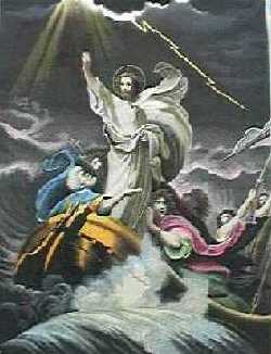 La première communauté chrétienne se souvenait que Jésus avait déclaré ignorer quelque chose (Mt 24, 36). A  | | Jésus, avec une étonnante liberté et une autorité incontestable, calme la tempête | partir de ce fait, peut-on dire que Jésus vraiment homme avait, comme tout homme, une connaissance limitée et grandissante ? Beaucoup de théologiens le pensent pour respecter l'humanité de Jésus. La première communauté chrétienne, par contre, a été frappée de l'étonnante liberté et de l'autorité incontestable de Jésus : plusieurs fois, il parle en son nom, en s'attribuant des prérogatives divines (Mt 5, 21-47 ; Mc 2, 5-11). A partir de cette constatation, certains théologiens pensent que Jésus - dès qu'il a été à même d'avoir une raison humaine - a toujours eu la conscience d'être le Fils du Père, mais que cette conscience s'est développée progressivement et qu'il a mis du temps à découvrir pleinement son identité. Cette conception respectueuse de la volonté et de la sensibilité humaine expliquerait pourquoi Jésus n'a réellement commencé son ministère public qu'à l'âge de 30 ans, et pas avant. Certes Jésus à douze ans manifesta déjà une conscience aiguë de sa filiation avec le Père, mais, elle avait encore besoin de mûrir (cf. Luc 2, 51-52). Si Jésus savait tout tout de suite, que vaudrait sa psychologie humaine ? La conscience de l'homme se développe lentement, prend petit à petit la mesure de son identité, sans cela elle n'est pas humaine. D'ailleurs, comme nous venons de le dire, Jésus affirme ne pas tout savoir (en particulier, il ne sait ni le jour, ni l'heure de la fin des temps - Mt 24, 36), il est tenté (Mt 4, 1-11), il semble apprendre des événements (Mt 14, 12-13) ou se sentir abandonné du Père sur la croix (Mt 27, 45-46).